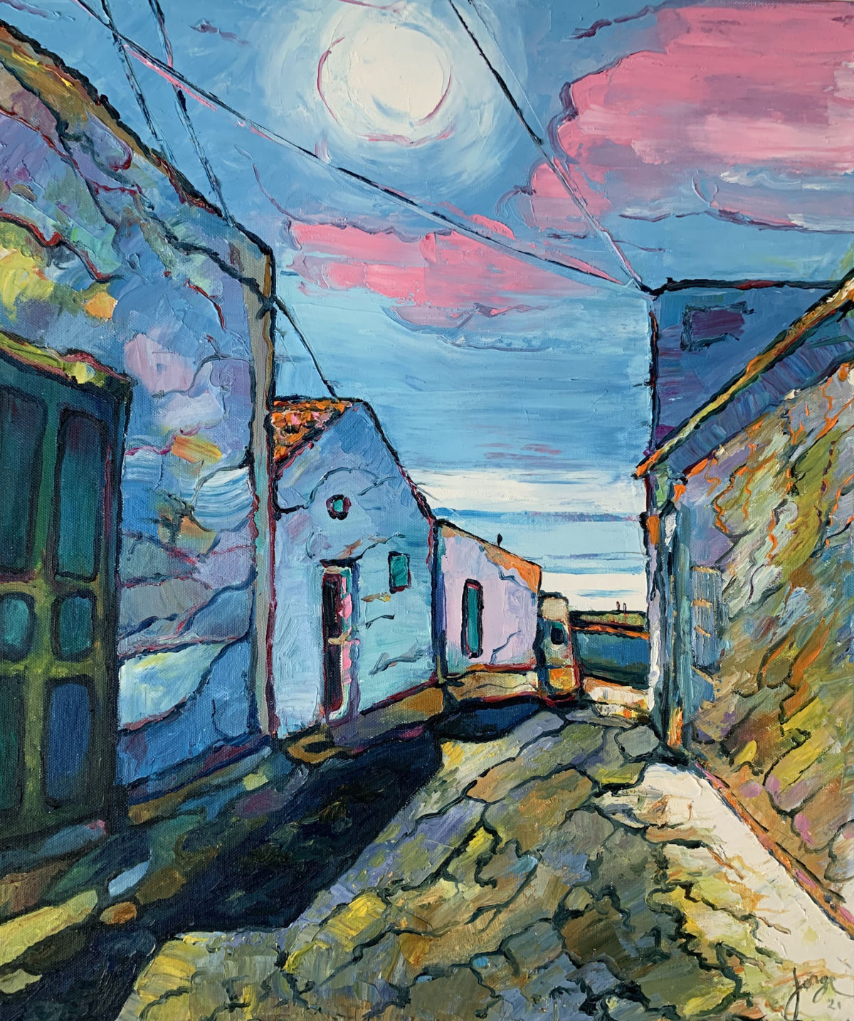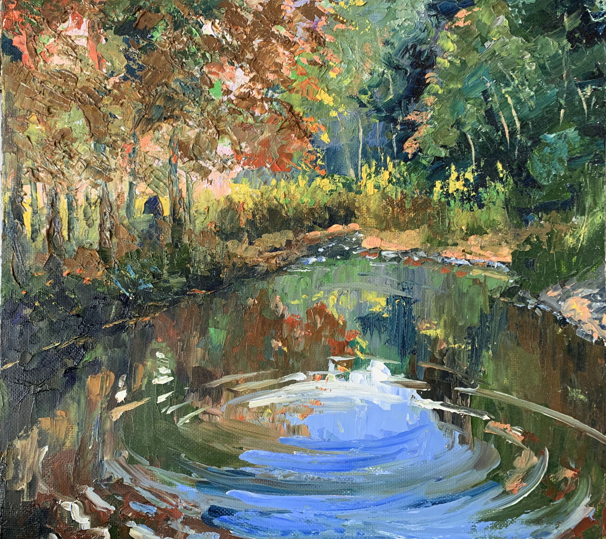 Täällä syntyvät öljyt, akvarellit, pastellit – ja joskus posliiniset kukat tai pienet tarinat savesta.